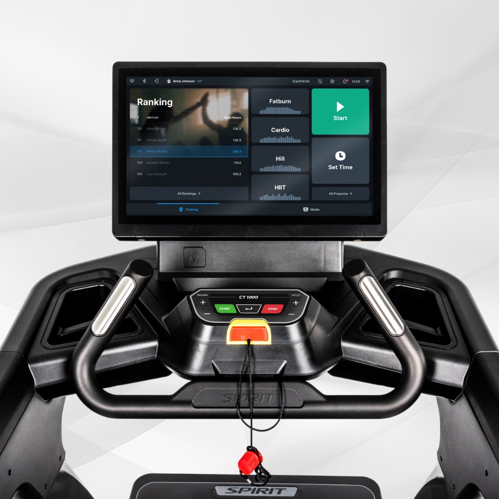 A passadeira Spirit CT1000ENT oferece a melhor experiência de fitness, mantendo-o sempre motivado. Com o seu design moderno e ergonómico, a CT1000ENT oferece um desempenho de alta tecnologia com foco no conforto. Este modelo excecional em todas as categorias possui um potente e fiável motor CA de 5.0 cv, uma construção robusta e componentes de alta qualidade que garantem um treino suave. Os utilizadores podem ter a certeza de que o seu equipamento suportará uma utilização constante e intensa. A ampla superfície de corrida de 56 cm por 157 cm permite passadas largas e atléticas, enquanto a inclinação de 0% a 15% proporciona um treino ainda mais intenso. O impressionante ecrã tátil de 54,6 cm, com uma imagem nítida e cristalina, é intuitivo e está repleto de opções de entretenimento, desde aplicações pré-programadas até ao espelhamento do ecrã do seu dispositivo e ligação direta via HDMI.